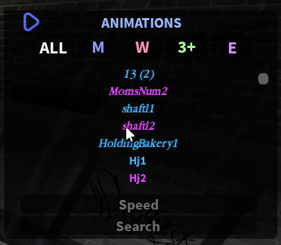 For example: To perform the animation "Shaftl", the person in the pink seat will have to do shaftl2, while the person in the blue seat will have to do shaftl1.