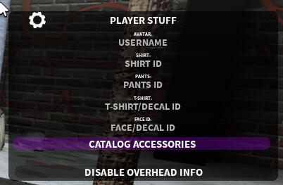 Furthermore, you can click on Catalog Accessories to view your current accessories. You can remove them, or add any accessories through their ID, allowing you to practically make any avatar inside the file.