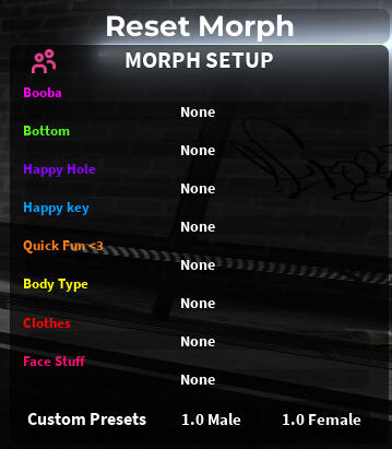 This menu has EVERYTHING morphing wise. Clicking on the "None" button will allow you to modify the respective morph of its category.